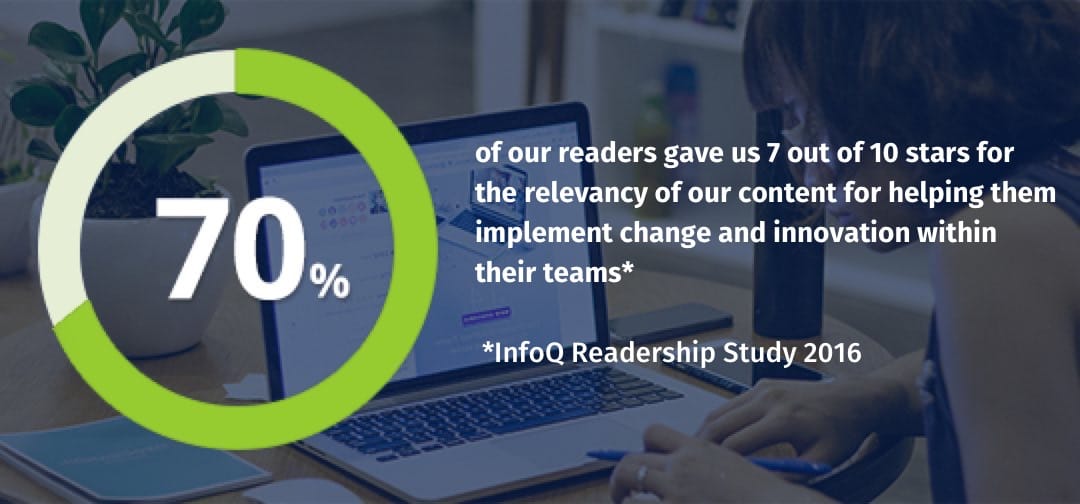 Over 550K global senior software developers rely on the InfoQ community every month to keep ahead of the adoption curve. Our community editors aim to ensure that our readers never miss out on important trends. One of the main reasons software architects and engineers tell us they keep coming back to InfoQ is because they trust the information provided and selected by their peers.