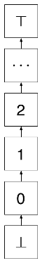 If we generalize this model, we can allow variables to re-bind as long as the update is an inflation that will trigger a bind of a new state, which is higher than the lattice. Let's walk through an example to see how this works. In this example, for simplicity, we assume that the single-assignment version of our dataflow language allows variables to be bound to natural numbers. Here, we represent the unbound state as ⊥, while we represent the error state as ⊤. This lattice serves as a state chart: it shows what directions the variable’s state is allowed to travel. In this case, we can change an unbound variable to have the value 1 (or 2, or 3, or so on.) however, once the value is bound, if we attempt to change its value again, we move to the error state.